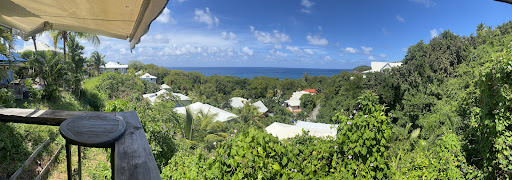 Derrière le portail, un chemin en pente abrupte menait à une première terrasse, parsemée de voilages légers, s’ouvrant sur une vue imprenable de la baie. Sur la droite, au fond, un petit carbet semblait se fondre dans le paysage, offrant un espace où l’on pouvait savourer un café ou déguster un repas simple mais raffiné.