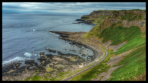 The Giant's Causeway is an area of about 40,000 interlocking basalt columns, the result of an ancient volcanic fissure eruption. It is located in County Antrim on the north coast of Northern Ireland, about three miles northeast of the town of Bushmills.