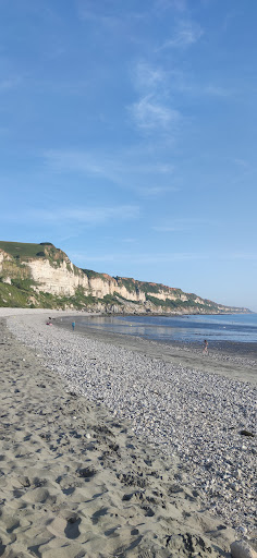 This is a beautiful atypical beach, a hidden gem, that has a feel of a natural reserve, don't let the nearby industrial zone put you off. The hill scenery is wonderful, the water is clean and inviting, a bit chilly but not as could as some other Normand beaches. Unusual dark sand makes you think of volcanoes. There are two pretty decent restaurants and a fries/sausage/beer café. Weird, but very spacious parking (hint hint faster to park here then search for one in Le Havre)... And if you fancy a bit of hiking between swims, there's a great panoramic trail - 1 hour hike to the top and back to the beach for...