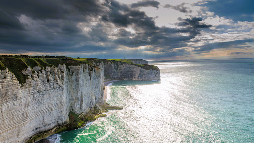 Ich stehe am Rand der Valleuse d'Antifer, und der Wind zerrt an meiner Jacke, als wolle er mich daran erinnern, wie schwach und verletzbar ich bin und wie gewaltig die Welt um mich herum ist. Der Pfad vor mir schlängelt sich abwärts, eingerahmt von dornigen Sträuchern und Gräsern, die sich im rauen Küstenwind neigen, als würden sie sich dem Meer beugen. Ich gehe langsam weiter, meine Schritte knirschen leise auf dem schmalen Weg. Es ist, als würde ich in eine andere Welt eintreten — eine Welt, in der meine Gedanken lauter sind als die Realität.