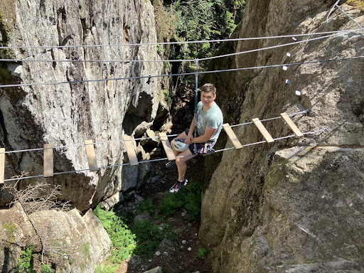 Great place to do your first via ferrata. the location has great views and is a little secluded so it isn’t to busy. You can get the equipment from tow different places (the sports store right next to the gas station or right across the gas station at the bar. Id say this via ferrata is a 2/5 in terms of difficulty and emotion. There are two different courses that overlap at several different spots so you can start on the easy route and switch if you want something a little harder/fun. If you do the harder route (red) there will the a couple zip lines, if you do the blue i’m not sure as i’ve never done the...