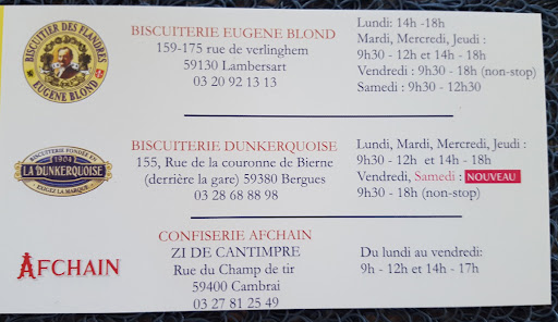 Read moreEUGENE BLOND - des souvenirs qui remontent à l'enfance ! J'adore cette marque depuis des années, ma grand-mère m'offrait des gaufrettes amusantes quand j'étais petite ! J'adore aussi leurs sablés ! Version sucrée ou version salée Et j'ai découvert plein de nouveautés ! J'ai su par Facebook qu'il y avait une vente d'usine (2 fois par an - Pâques et Noël) et mais j'ai découvert qu'il y avait aussi un magasin ouvert toute l'année ! Une visite pleine de gourmandise et de souvenirs s'impose à tout bon Ch'ti qui se respecte ! Et à tous ceux qui veulent découvrir les richesses...