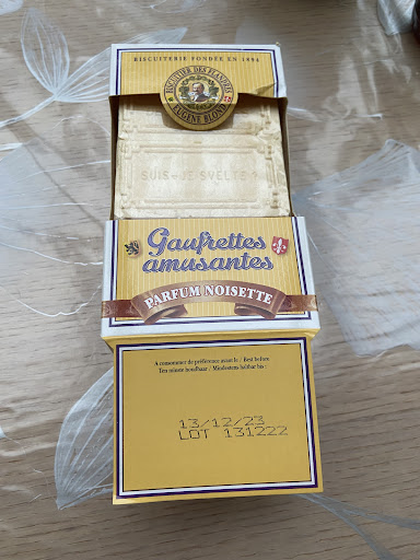 Read moreJ'ai acheté des gaufres à la vergeoise et en fait elles étaient fourrées au fromage. J'ai téléphoné au service conso qui m'ont dit qu'effectivement il y avait eu une erreur lors de la fabrication. Très gentiment en dédommagement, ils m'ont envoyé un petit colis , malheureusement il comportait un paquet de gaufres à la vanille qui étaient sèches et à peine garnies, et des gaufrettes à la framboise que nous avons jetées car elle étaient molles. Elles avaient je pense pris l'humidité. J'avoue que nous sommes très déçus de leurs produits et je n'en achèterai plus. Ou alors on a vraiment pas...