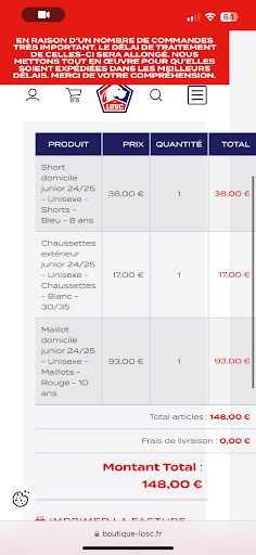 Read moreAlors moi j’ai commandé un T-shirt le 25/10/2023 déjà beaucoup de retard dans les commandes il est soi-disant arrivé le 5/11/2023 au point relais que j’avais désigné, or aucun colis n’est arrivé à destination la dame qui m’a reçu m’a bien dit que le colis n’était jamais arrivé chez elle et n’était donc pas retourné au destinataire, donc je pense que le livreur s’est servi, nous avons payé 40 € le T-shirt plus 6€ de frais de port !!! J’appelle la boutique du LOSC, ça ne répond pas un message me dit que la boîte vocale est pleine pas étonnant s’il ne réponde pas au téléphone. J’ai envoyé des messages au service client, au début, il me répondait en me disant que c’était la société DPD qui était en charge du colis que je devais voir avec eux, Mais voilà la société DPD me dit que c’est la boutique du LOSC qui aurait mis le colis en non conformité, il se relance la balle, je souhaite juste être remboursé car le colis je ne l’ai pas eu en ma possession et , mais depuis la boutique du LOSC ne répond plus Donc en fait il vous laisse comme ça sans réponse par compte pour encaisser l’argent ça ils savent le faire Je pense qu’il doit y avoir une assurance pour ce genre d’incident Je ne sais pas si je peux porter plainte, je vais me renseigner car ce...