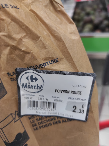 Read moreSi je pouvais mettre 0 étoiles, je l'aurais fait. Mon ticket de caisse n'est pas sorti car il n'y avait plus de papier dans votre machine je vais donc voir à l'accueil pour qu'ils me le ressortent car seul l'en-tête avec les coordonnées du magasin est sorti. L'employé en question regarde à peine deux minutes et me sort désolée Madame je peux pas sortir votre ticket, la machine est bloquée, vous auriez du vérifier de votre côté, c'est noté sur le côté de l'écran mais moi j'en suis sûre que vos réductions sont passés. Même si c'est noté le ticket de caisse est quand même obligatoire au niveau légal c'est ce qui constitue la preuve d'achat, je sais que certains magasins n'impriment plus les tickets mais là je n'avais pas la question et je demande toujours le ticket ! Je trouve ça aberrant de me faire des reproches ainsi alors que c'est clairement vous qui êtes en tort et une fois rentrée lorsque j'ai tout recalculer je constate qu'il y a une différence de 1€50 à peu près. Carrefour Market Lille Fives c'est terminé, j'ai jamais eu ça dans n'importe quel commerce on me l'a toujours ressorti. C'est pas une grande somme mais si ça s'accumule ça va faire beaucoup sur le budget d'une étudiante. Samedi 10...