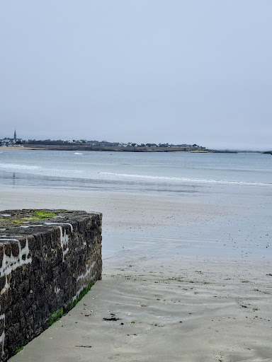 Une plage de ville, la promenade qui la longe est une autoroute à promeneurs, un spot aussi pour les cyclotouristes ou les coureurs à pieds, à chacun son espace. Dans l'eau il n"est pas rare à marée mi-haute ou haute de voir des nageurs en eau-libre enchaîner les aller-retours dans cette eau calme et rarement houleuse. Plus proche du bord des marcheurs avec de l'eau jusqu'à la taille apprécié le sable d'un bout à l'autre de la plage. Sur le sable se côtoient des jeunes venus de l'université ou des lycées profiter après les cours d'une baignade proche ou des retraités en journée qui bronzent au calme non loin de leurs luxueuses résidences qui font aussi le charme de l'endroit. Ici rien n'est sauvage, on peut ne pas aimer mais tout est tout de même calme et le paysage en face de Gâvres d'un côté et Port-Louis de l'autre offre souvent sur la rade le ballet des voiliers qui entre ou sotent de Lorient. I vous êtes chanceux vous reconnaîtrez les Pen Duick de Tabarly ou les grandes voiles des courses au large partir ou revenir de...
