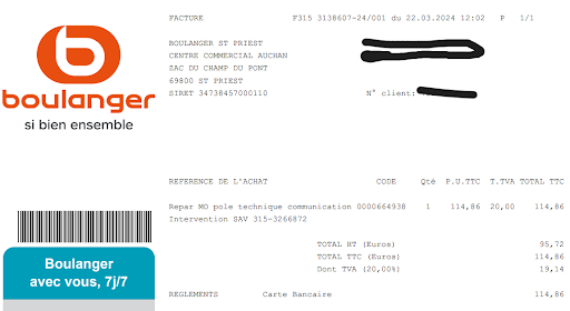 En conclusion, non, je ne remettrai plus les pieds dans ce Boulanger ! Je réfléchirai à deux fois avant d’effectuer de futurs achats dans cette enseigne. J’espère sincèrement avoir une suite favorable à mon dossier.