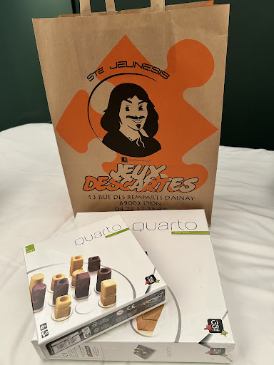 Read moreLe parfait résumé de cette boutique est imprimé sur la tranche du sac qui emballe les trésors que vous y aurez dénichés. Des jeux, des conseils et des sourires ! Tous les murs de cette caverne sont recouverts de boîtes colorées qui renferment les secrets pour animer les soirées ou enjoliver un après-midi pluvieux. Tout y est ! Pour petits et pour plus grands, pour 2 ou pour famille très nombreuse, pour occuper 5 minutes ou pour une soirée qui dure jusqu'à l'aube... Et c'est bien pour cela que les conseils avisés, objectifs et bienveillants des hôtes sont si précieux. Bref, un laaaaarge choix, des conseils au top, des sourires et de l'humour mais aussi un grand professionnalisme. Cerise sur le gâteau : un programme de fidélité, et ça fait...