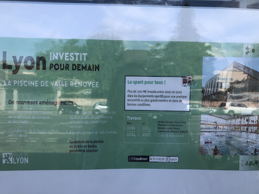 Read moreLa Piscine de Vaise, à LYON (département du RhÎne, France) est l'un des rares établissements nautiques en France à disposer de plongeoirs normalisés - tremplins Maxiflex-B de hauteurs 1m, 3m et plates-formes 3m et 5m - intérieurs, avec un club de plongeon qui enseigne cette activité acrobatique (l'une des 5 disciplines de la natation). Tous ces points constituent un gros avantage par rapport à d'autres piscines dans lesquelles ces équipements sont absents. Cette piscine lyonnaise accueille ponctuellement des championnats régionaux et nationaux de Plongeon, ainsi que le Meeting de Plongeon des LumiÚres, dans sa derniÚre édition, celle de décembre 2023.