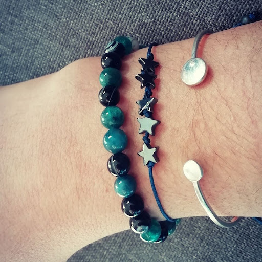 Souhaitant monter en gamme, je me suis présenté à la boutique hier pour acheter 1 pierre œil de tigre d'un bracelet 7 chakras acheté à la boutique Minéralia. J'ai été très bien accueilli par le gérant qui m'a bien conseillé et j'ai finalement acheté 3 pierres. N'ayant toutefois pas trouvé les 2 cylindres séparateurs en métal proposé par la boutique à mon goût, j'ai poursuivi ma quête (pas simple lorsque l'on a une idée très précise de ce que l'on recherche), et n'ai donc pas souhaité faire remonter le bracelet.