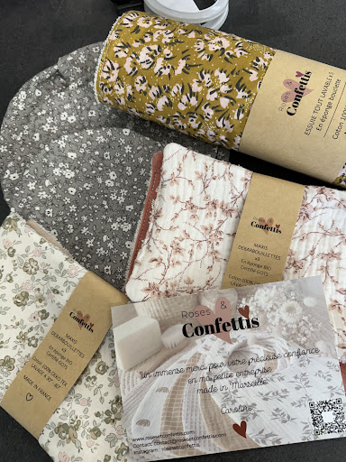 Read moreJe suis absolument fan du travail de cette créatrice chez qui je commande quasiment tous mes cadeaux de naissance depuis maintenant plusieurs années. Ses couvertures plaisent particulièrement pour les bébés d'hiver ! Et avec le développement de sa gamme zéro déchet, je commande maintenant régulièrement pour moi-même : cotons lavables, gant démaquillant, pochettes à savon, essuie-tout et éponges lavables... tout est si joli et d'excellente qualité ! A noter en plus que la plupart des créations sont réalisées dans un ESAT. Ça c'est Marseille bébé ! Bravo et longue vie à Roses...