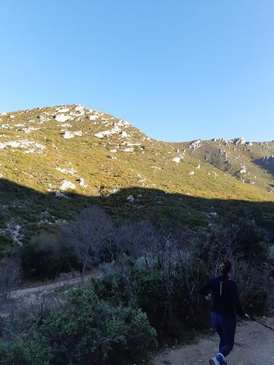 Garrigue, sentiers de randonnées pédestres, petites randonnées et grandes randonnées, direction Pic Saint-Cyr pour apercevoir Marseille, Aubagne et Cassis, 1h30 de marche environ pour y arriver en partant du parking du parc des bruyères, vue sur Carpiane (terrain militaire), possibilité de promener son chien, tenu en laisse au niveau du parc, en haut des collines terrain militaire...