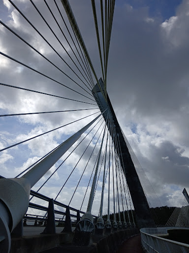 Read moreUn chef-d'œuvre d'ingénierie et d'esthétique, parfaitement intégré dans le paysage majestueux de l'Aulne. Ce pont à haubans, premier du genre en courbe en France, impressionne par sa légèreté visuelle et sa puissance structurelle. Ses lignes tendues, presque aériennes, dialoguent avec les méandres du fleuve et les reliefs boisés de la presqu'île de Crozon.