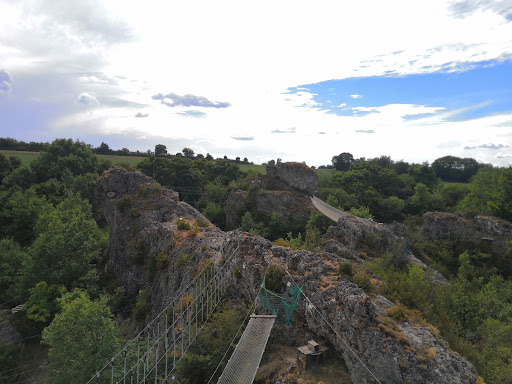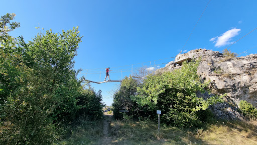 Do this, if you want to climb over natural rocks ! This is the greatest climbing park we have been to, and we‘ve been to many. It is really sth. special, while climbing the yellow or red routes (middle or high difficulty) you have tremendous view of the Larzac, for many many kilometres around. Michael and his wife (?) took real good care of us, explained everything in detail and made sure we understood it before letting us onto the rocks. I would recommend the park for kids from the age of 7 or...