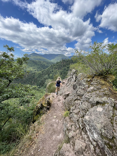Itâs a really nice hike that anyone with a normal level of fitness can manage. We went with children aged 12 and 15, and they completed the hike without any problems. The nature is beautiful, the trails are good, and there are some truly stunning viewpoints along the way. You can, among other things, climb up into an old castle via stairs with railings, and there are benches along the route. We measured about 177 meters of elevation gain and walked clockwise. Park at Auberge la Cascade du Nideck, where thereâs plenty of parking, and the restaurant is a great place to end the trip with a cold beer or water. Enjoy...