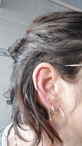 Je suis seulement retournée dans ce salon pour un changement de bijou au nez et elle a utilisé une barre car elle n'arrivait pas à enfiler le nouveau percing. Elle a tellement forcé que la barre m'a déchirée le cartilage et est ressortie pas par un nouveau trou ! Elle a donc percé mon cartilage avec la barre à bout rond qui sert uniquement au changement de piercing.
