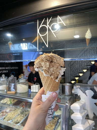 Read moreNon touriste mais habitant proche du Touquet, nous avons voulu essayer KOKOA, oui parce habituellement nous prenons toujours "La BonbonniÚre" sur l'autre trottoir proche de celui-ci. Accueil ...bof de bof...des jeunes qui discutent entre eux alors que la queue....j'ai eu l'impression d'avoir à faire à des jeunes stagiaires... pas de tarifs visibles pendant la queue, les glaces fondent trÚs trÚs vite à peine sorti du magasin que ça coulait déjà au sol. Nous avons pris 1 glace 3 boules (chocolat blanc) + 1 glace 2 boules (vanille/caramel confiture de lait) + 2 eau (cristalline) = 18,50⏠!!! glace vanille trop sucré, donc la notion est un peu sévÚre mais presque 20⏠! on s'attend à une exception à ce prix ! seul le prix est exceptionnel. La prochaine fois je sais ou retourner (La bonbonniÚre) avec accueil plus...