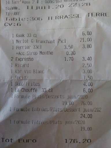 Read moreCet avis concerne uniquement la partie restaurant. Nous arrivons à deux aux alentours de 20h, sans réservation. On nous explique que toutes les tables en terrasses sont pour les gens ayant effectués des réservations, on nous installe donc à l’intérieur, pas de problème jusque là. On prend notre commande assez rapidement même si plusieurs serveurs/serveuses viennent nous demander la même chose. Bref pas de problème. L’apéritif arrive, s’en suit l’entrée dont nous somme ravie elles sont très bonnes. Nous regardons régulièrement la terrasse et ne la voyons jamais plus rempli que 50/60%. Nous attendons nos plats pour la suite, au bout de 40 MINUTES ils finissent par arrivés. Pas un mot d’excuse ou d’explications, le serveurs repart comme si cela était normale. Pour un restaurant qui se veut aussi classe, je trouve cela étonnant. Nous sommes alors sous les coups de 21h la terrasse est toujours remplie à 50/60%. À notre plus grande surprise, 1 groupe de 4 personnes , puis un deuxième arrivent et sont installés en terrasse. On se dis que cela est normal car ils sont 4 et nous ne sommes que 2. Puis arrive un couple, sans réservation, qui a son tour se fait installer en terrasse. On commence à se dire qu’on nous as pris pour des cons, car nous ne sommes pas des clients habitués. Arrive le dessert ou le serveur nous fait la gentillesse de nous proposer de nous installer sur des fauteuils en terrasse pour les consommer. Nous acceptons avec plaisir ! Les fauteuils sont sales et l’endroit est peu éclairé. Dommage nous qui rêvions de cette terrasse depuis plus d’une heure. Les desserts arrivent et la, c’est le drame. Une tarte au citron meringuée tout ce qu’il a de plus banale et tout ce qu’il y a de plus décongelée, et des profiteroles au praliné, sans praline, avec de la glace vanille à la place, et tout ce qu’il y a de plus décongelé aussi. D’ailleurs revoyez la cuisson de votre pâte à choux, on travail dans le métier et elle était bien trop cuite, donc immengeable. Bref une soirée qui a bien commencée mais dont le déroulement et la fin nous...