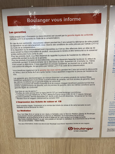 Read moreAchat Web, mais vu que ma commande est annulée, on m'empêche de donner mon avis sur le site internet de boulanger. Malin pour booster la note des avis. Du coup je vais le donner pour le magasin proche de chez moi. J'ai vécu une expérience lunaire pour la commande d'un lavage linge le 6/09 21h avec promesse de livraison le lendemain de la part de Boulanger. Le 7/09 on m'appelle pour me dire que je ne serai pas livré comme prévu. Je tiens à dire que si j'ai acheté sur Boulanger c'était uniquement pour la promesse de livraison du lendemain. Sinon j'aurais passé monchemin et chercher une autre entreprise capable de me fournir ce service. J'ai un premier opérateur qui me dit que si je veux je peux me rendre en magasin et aller chercher l'appareil moi même (sic) Je lui dit que s'est plutôt à eux d'organiser tout cela avec le magasin, il me dit OK je vous transfere à la vente à distance. La directement on me dit que ça ne les concerne pas,je repart vers le service client un nouvel opérateur m'explique que les livraisons le lendemain ne sont souvent pas faites re sic) parce que les magasins chargent les camions la veille et ne reprennent pas les commandes du soir contrairement à la promesse Boulanger. Je lui demande de voir ce qu'il peut faire et il me met en attente et la com est coupée. Je rappelle, la on me dit que ce n'est pas possible de me livrer avant lundi. J'ai un bébé de 1 mois, je travaille je n'ai pas le temps d'attendre, mon seul critère était le délai. Je dit que je suis prêt changer de machine et aller la chercher si ils me mettent un véhicule à disposition refus. On me dit même que ma demande n'est pas fondée car la livraison le lendemain est valable pour des commandes passer avant 14h. On me renvoi vers les CG qui stipulent ça. J'objecte que la promesse est marquée en gros que sur le site "nouveau pour les gros objets commandez avant 22h livraison le lendemain" et que mon bon de commande le précise d'ailleurs on me dit qu'il n'y a rien à faire. Vu ces échanges, j'en déduis que Boulanger fait des annonces trompeuses sur son site et ne met pas les moyens pour honorer ses engagements pour piéger les clients. Je transmettrai à la répression des fraudes, j'ai les captures d'ecran. En désespoir de cause j'ai annulé ma commande sans rien obtenir comme geste de la part de Boulanger qui soit disant et élu service client 2024. Pour info, traversez la rue allez chez conforma en face au moins ils vous proposent une camionnette le jour même et tiennent leurs promesse eux. Boulanger a manifestement des pratiques douteuses sur son site et un service client qui a part dire désolé on ne peut rien faire ne cherche pas du tout à rendre service et régler les problèmes organisationnels ou compenser leurs...