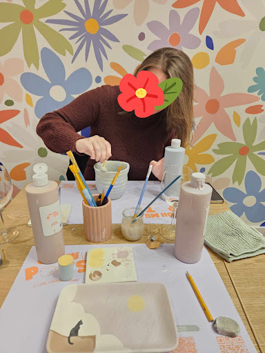 Venue avec des amies, et également avec mes enfants (5 et 7 ans) On paie le prix de sa céramique et ses éventuelles consommations. Les prix vont d’environs 10-15 euros à 40-50 pour les plus grand vases. Comptez environ 30 euros pour une assiette. Ça peut sembler cher mais toutes les fournitures, matériel est disponible sans aucune limite. Pinceaux scotchs éponges et pinceaux tampons lettres pochoirs tours et surtout une quarantaine de couleurs ! Le temps est de deux heures, vaisselle comprise. C’est bien de réfléchir avant de venir à ce qu’on souhaite faire ! Si on n’a pas le temps de finir sa pièce, on la paie et on peut revenir la finir une autre fois dans un autre créneau. Public visé plutôt adulte mais ok pour enfants calmes. Par contre les peintures sont rangées très en hauteur pour certaines il faut que l’adulte les aide un peu ! Boissons café et soft, pas d’alcool (en même temps l’ambiance ne s’y prête pas du tout) Souvent cookie ou muffin (très bons !) Pour ne rien gâcher l’accueil est chaleureux, l’équipe est adorable. L’ambiance est douce et feutrée on s’y sent tout de suite à l’aise. Si on a besoin d’un conseil ou d’aide ils sont présents. J’ai pu montrer à mes filles les différentes étapes, le four, les céramiques cuites et non cuites. Ça leur a beaucoup plu !