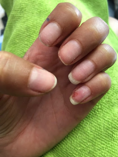 Read moreFuyez ... En près de 5 ans à fréquenter différentes ongleries (du petit salon du village aux chaines comme passage bleu ou Body Minute en passant par les salons les plus douteux de France et de Navarre), on ne m'a jamais massacré les ongles à ce point. C'est bien simple, l'ongle de mon petit doigt de la main gauche s'est tout simplement mis à saigner sous un coup de lime d'une violence absolue. Pourtant, j'avais patienté suffisamment longtemps et le vernis s'en allait tout seul en retirant les papillotes ...Un coup de pousse cuticule par ongle aurait amplement suffit ...mais l'esthéticienne qui s'occupait de moi en regardant sa montre d'un air pressé en a décidé autrement ... Vous pouvez admirer le résultat de cet empressement sur les photos que je joins au commentaire ... entre traces de limes sur tous les ongles, morceaux de vernis restants et ongle à vif ... J'ai l'occasion de découvrir, pour la première fois de ma vie, la sensation des draps, du vent, de l'eau sur un ongle à vif ... C'est tout bonnement insupportable. Je viens de dépenser une bonne cinquantaine d'euros en soins en tout genre pour rattraper la catastrophe et je sais qu'il faudra des mois pour que mes ongles se régénèrent ... La réponse de l'esthéticienne à la vue de mon ongle qui saignait était de mettre en avant la fragilité de mes ongles... Inutile de préciser qu'en 5 ans mes ongles ont connu des périodes bien moins heureuses et que je ne suis jamais sortie d'aucun des salons que j'ai fréquenté avec un doigt en sang .. Il faut parfois savoir simplement et humblement présenter des excuses.