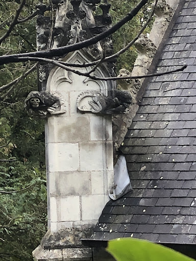 Read moreAttention, chapelle située au bord de la route sans possibilité de rentrer à l'intérieur. En revanche, curiosité intéressante. Il suffira de lever la tête aux niveaux des gargouilles et de faire le tour de la chapelle pour se rendre compte qu'il y a des invités récents parmis les représentations sacrées...