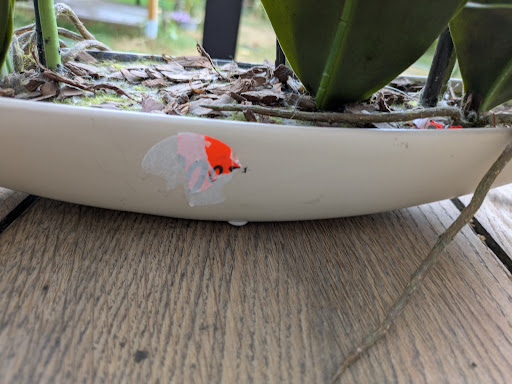à l'intérieur 2 vases d'intérieur (15 et 25 euros), 2 fleurs séchées sous coupole en plastique (10 euros chaque) et une orchidée artificielle (50 euros mais qui était vendue à -30 % : donc 35 euros) : au total finalement 95 euros.. et pas 150 ... Au moment où on passe à la caisse il faut en fait laisser le cabas, mais pas de carton proposé, tout est donc posé en vrac dans le coffre... j'essaie de caler les choses comme je peux.. Arrivé à la maison je réalise qu'on ne peut clairement pas offrir les choses directement : il y a des étiquettes déchirés sous chaque article (l'ancien prix probablement) des traces de doigts sur les coupoles et l'orchidée est recouverte de poussière photos à l'appui... ça devait trainer dans un coin de remise depuis des mois et des mois sans jamais être lavé et. ca a. été déposé en vrac après avoir vaguement supprimé les étiquettes de. remise de prix...