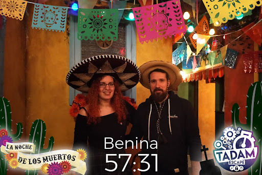 Plusieurs semaines aprĂšs, il ne se passe pas une discussion escape sans que je parle de la Noche de los muertos. Cette room est un bel exemple d'escape game complet oĂč chaque dĂ©tail est pensĂ© pour favoriser l'immersion et la fluiditĂ© du jeu. Pas de secret, c'est la marque des passionnĂ©s. Revenons une seconde sur l'accueil et l'espace d'accueil, un endroit trĂšs agrĂ©able avec quelques jeux et une dĂ©co originale. L'accueil est chaleureux et JĂ©rĂ©my nous a mis tout de suite Ă l'aise. Nous nous apprĂȘtons ensuite Ă dĂ©coller pour le Mexique et dĂ©couvrons des dĂ©cors ultra soignĂ©s et l'impression d'avoir rĂ©ellement voyagĂ© (je suis fan du fait que les voix qui nous ont suivis pendant le jeu ont Ă©tĂ© jouĂ©es par de vrai.e.s mexicain.e.s, encore un dĂ©tail qui a toute son importance pour moi...) Les Ă©nigmes et les espaces sont nombreux et variĂ©s, fun et originaux par moment, le thĂšme est vraiment bien exploitĂ© puisqu'on sort de la salle en ayant appris plein de choses sur cette tradition. Cette room a Ă©tĂ© le coup de coeur de ma journĂ©e Ă 5 rooms et rentre dans mon top 3 grĂące au mix immersion / Ă©nigmes / fun parfaitement dosĂ©. Toutes les anecdotes glanĂ©es auprĂšs de Jeremy en debrief ont appuyĂ© le fait que cette rooms a Ă©tĂ© rĂ©alisĂ©e avec beaucoup de passion, de coeur et de respect pour l'histoire qu'elle raconte. Je finirai avec le moyen de communication du GM parfaitement intĂ©grĂ© au scenario, tiens encore un dĂ©tail bien pensĂ© ;) (comme quoi il y a autre chose qu'un Ă©cran ou un talkie dans la vie !) Vivement la suite chez Tadam ! (avis donnĂ© aprĂšs plusde 80...