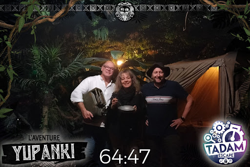 L'aventure Yupanki: Oui un scĂ©nario type Jungle c'est dĂ©jĂ vu mais ... Des dĂ©cors au top, beaucoup d'Ă©lĂ©ments rĂ©alistes qui mettent instantanĂ©ment dans l'ambiance , des Ă©nigmes originales et comme toujours chez Tadam, beaucoup de cohĂ©rence. Des manipulations ingĂ©nieuses et agrĂ©ables Ă jouer. Une fois de plus le game mastering a Ă©tĂ© parfait et ça a l'air d'ĂȘtre la marque signature de cette enseigne. Une Ă©quipe attentive et attentionnĂ©e. Une valeur sĂ»re et forte dans la rĂ©gion Nantaise.