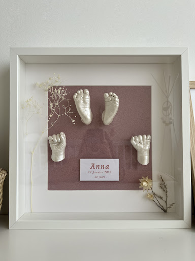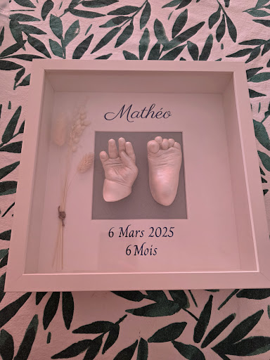 Read moreJe suis tombée par hasard sur une publicité du compte... cela m'a de suite plus ! J'ai donc décidé de contacté la créatrice. Très bon contact téléphonique, prise de rdv possible le week end donc parfait pour nous voulant faire les 2 mains de nos enfants (5 semaines et le grand 8 ans, qui est donc à l'école en semaine) et les nôtres. Nous avons passé un moment sympathique à la maison pour faire les moulages. J'ai suivi l'avancement sur Instagram et chaque jour je trouvais son travail sur notre cadre magnifique. Nous venons de récupérer notre cadre et il est plus que parfait ! Les détails sont impressionnants. Une qualité de travail exceptionnelle, un cadre qui nous représente, grâce à son écoute et ça créativité en plus. Je recommande vraiment Amelie pour n'importe quelle occasion ou même seulement pour vous faire plaisir et avoir un super cadre à la maison !!...