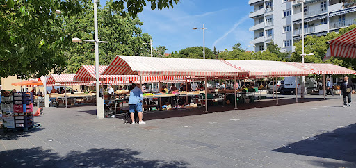 Petit marché populaire, sur la place de l'église Saint-Roch. Le marché regorge de produits de la région, frais et d'excellente qualité. Melons, courgettes fleurs, tomates, abricots splendides.....de quoi se concocter de bons petits plats avec des produits sains. J'ai même trouvé de l'ail violet frais ! Des pastèques juteuses et parfumées....bref un enchantement pour les yeux et les papilles et une ambiance de marché avec la saveur des interjections du sud !!!! Quelques cafés autour de la place permettent de profiter encore quelques instants en terrasse de cette atmosphère joyeuse et bonne enfant avec les premiers rayons du soleil au matin. Excellente boulangerie Danjou ( rue monseigneur Alfred Daumas) à deux pas qui propose pains spéciaux (epautre, maïs, pain noir et plusieurs choix de baguettes...traditionnelles où au levain par exemple). C'est une pause vraiment bien agréable et délicieuse au retour...