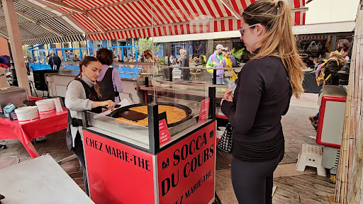 Read moreRight at one of the ends of the Flower market, you'll find this socca stall. Queue for this fresh socca was always a good few people deep! Within minutes the socca on hand is cut up and sold out... only for another to be brought by (on wheels with a horn to prompt pedestrians to move outta the way!) and the plates switched and voila, freshly baked socca to be sold again!