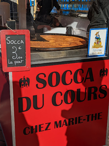 Read moreSocca (3 euros) - 5 stars The only socca I've had. It's phenomenal! We went right when they opened around 9.30am. It was piping hot. It was flavourful with umami and spice (sort of with the flavour of a pappadom? But more intense and savoury). The texture was perhaps like a crepe, but not chewy. My husband thought it was like a thosai.