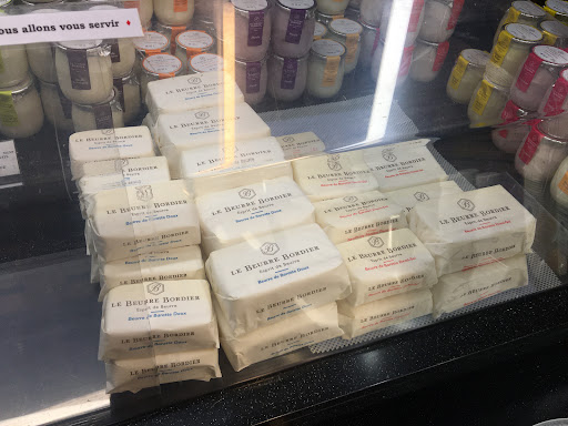 On recommendation from a Trip Advisor expert, we visited this little cheese shop in Saint Maur des Fosses for Bordier butters. They had a large selection of flavors including a seasonal one--chocolate. Their prices are also much better than at La Grande Epicerie. 125 grams of demi-sel is 3.25 euros vs 5.5 euros at La Grande Epicerie. The chocolate flavored butter was about 5.90 euros and it was also divine.