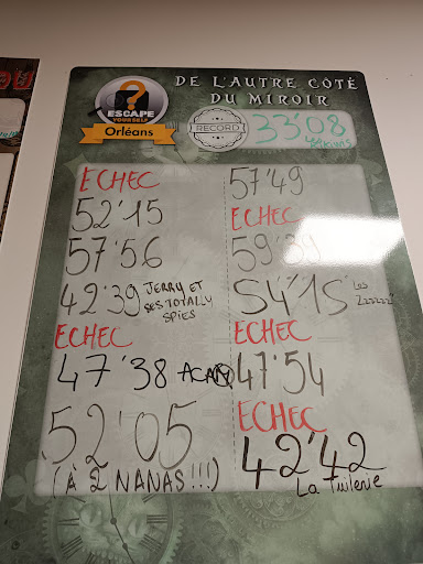 Read more5 étoiles car ce n’est pas possible de mettre plus. Un énorme énorme énorme merci à ces deux game master incroyable ! Nous étions de passage à Orléans , et nous avons fait d’une traite les 3 salles ! Alice est juste super , on est vraiment dans une immersion sympa et un sacré petit coup de cœur ! Avec des énigmes divers et variés ! La salle vaudou est un peu plus ambiance stressante mais très sympa et des énigmes différentes et bien sympa ! Et le pharaon m’a réconcilier avec les salles thèmes Égypte , j’ai vraiment bien aimé , peu de mécanisme mais très sympa également ! Bref ! Une aprem incroyable, avec un accueil géniale aussi ! Je recommande les yeux fermés vraiment mais mieux vaut les garder ouverts pour trouver les indices ! 🕵🏼 bisous des...