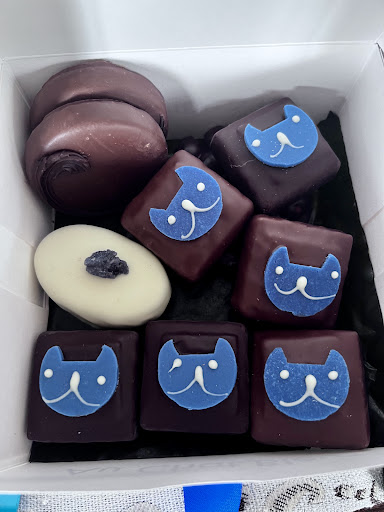 Read moreJe suis passĂ© de nombreuses fois devant la vitrine en salivant devant les chocolats prĂ©sentĂ©s. Cette fois j ai dĂ©cidĂ© d'entrer et la mais que de choix tout bonnement incroyable. Accueil trĂšs chaleureux de la dame prĂ©sente qui explique et dĂ©taille avec soin et passion les produits. Elle nous a fait goĂ»ter le classique bonbon chat bleu un pur dĂ©lice. Nous avons pris 3 enoooooormes chocolats. Celui avec les 2 grains de cafĂ© Ă l'intĂ©rieur, un chocolat noir puissant avec un goĂ»t de cafĂ© intense et une lĂ©gĂšre amertume, un vrai moment de plaisir. Un autre avec des amandes une consistance de ganache ferme, la coque craque, l'intĂ©rieur fond, bon Ă en perdre la raison đ«đ€Șđ Grande maĂźtrise des textures et des gouts, un savoir faire indĂ©niable. Ces chocolats sont gourmands croquants đ€Ł. Il en reste tellement Ă dĂ©couvrir j'y retournerais avec grand plaisir. C'est une trĂšs trĂšs treeeeees bonne addresse pour les amateurs de chocolats. Le prix est totalement justifiĂ© pour la grande qualitĂ©...