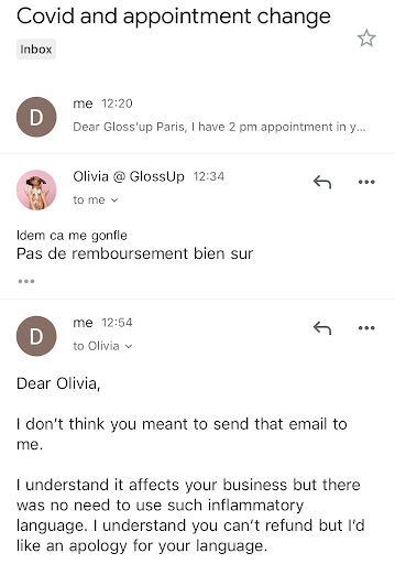 Ah oui et avis aux filles du salon, quand une cliente appelle car elle a des problèmes de réservation, évitez de vous moquer d'elle ouvertement dans le salon et pouffant. Franchement c'est une attitude plus que moyenne. Ca ne donne aucune envie de revenir. C'est bien beau de chouchouter les instagrammeuses mais ce ne sont pas elles qui vous font tenir.