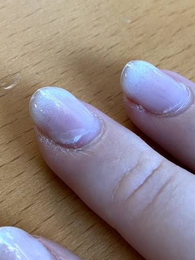 Quelle surprise quand 2 jours après des bulles d'air apparaissent à nouveau sur le coté de la manucure... pour que finalement la manucure finisse par lâcher à peine deux semaines après l'avoir faite.
