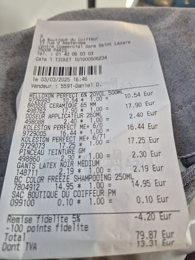 Read moreTrès déçu de mon passage à cette boutique, je suis rentré depuis seconde j'ai pas eu le temps de faire le tour qu'on m'a sauté dessus. Les vendeurs soir disant coiffeur ou coloriste sans pas aimable il vous conseille des produits pour vous pousser à la consommation et pas selon vos besoins.... Je suis moi même coiffeur coloriste pour une grande maison de coiffure à Paris, je n'avais pas besoins de conseille mais j'ai pris le temps d'écouter les conseille et je ne les ai pas suivie car je sais de quoi j'avais besoin. Du coup la personne qui ma sois disant conseillé c'est retrouvé vexé que je ne prenne pas ce qu'il ma dit mais autre chose et est allé dire à sa collègue au moment où elle encaisse ce que j'ai pris de noter sur mon compte que je n'ai pas suivie ces conseille, ce qui est totalement ridicule et ce qui veut dire que l'on doit prendre ce qu'il vous dise ça devient une obligation si non il sont vexé... Ça en dit long sur leur professionnalisme bref si vous ne voulez pas avoir une couleur ratée ou un produits qui ne vous faut pas alors éviter cette boutique, car leur intérêt c'est de vendre les produits que vous n'avez pas forcément besoin et les plus chères pour ce faire un pourcentage sur le chiffre de vente sur leur salaire, fiche de paie. Je suis très déçu...