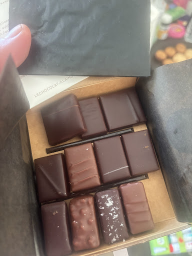 Read morePour avoir fait presque tous les grands chocolatiers de Paris, je suis déçu. Les chocolats sont des pralinés non pas qu’ils sont mauvais mais cela ressemble plus à une gaufrette qu’un chocolat, et c’est particulier car avec un très bon café, cela passe mal, c’est pas du tout adapté. Le chocolat est très bon, d’excellente qualité avec un dosage de sucre parfait mais contrairement aux autres chocolatiers ou le goût persistant du chocolat reste longtemps, on sent bien les arômes, la banane, le côté boisé ou fruité de certains chocolat. Là rien, tout est gâché par la praline parfois plus persistante que le chocolat lui-même. Et c’était la 3ème grande boîte… J’ai aussi testé les ganaches délicieuses mais le calibrage des chocolats...