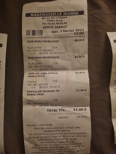 Après avoir dépensé plus de 300€ dans cette boutique, on m'a fait une scène, on me fait venir sur place pour vérifier l'état du jean qui était en parfait état, j'avais juste retiré une des étiquettes que je n'ai pas pu remettre et je l'avais bien indiqué par téléphone.On commence par me refuser l'échange: les 2 vendeuses sans aucun respect me regardent et me parlent très mal. Heureusement que la responsable a fini par accepter après un plaidoyer de plus de 15 min. Elle est restée en retrait au début dommage. En effet, le délai était dépassé de presque 1 mois mais j'avais acheter tellement d'affaires que je n'avais pas eu le temps de le mettre. On insiste pour la raison incroyable. (En février, la vendeuse avait fait une erreur de caisse, ne pouvant pas me rembourser le lendemain, j'ai accepté l'avoir et j ai dû acheter 2 articles pour lesquels je suis satisfaite. Ils auraient du accepter dès le départ avec le sourire vu l'état de l'article. Vous perdez 2 clientes avec ma copine en plus des 5 qui sont ressorties. Il faut apprendre à gérer l'exceptionnel et être commerçant pas vous décharger sur la clientèle fidèle. Si votre métier ne vous plait pas changez mesdames! Bonne journée. Ps: je joins le ticket de caisse en question. Je vous laisse faire le calcul pour la différence de l'avoir! on n' indique pas le montant mais on le déduit! Je ne l'ai donc pas sorti de...