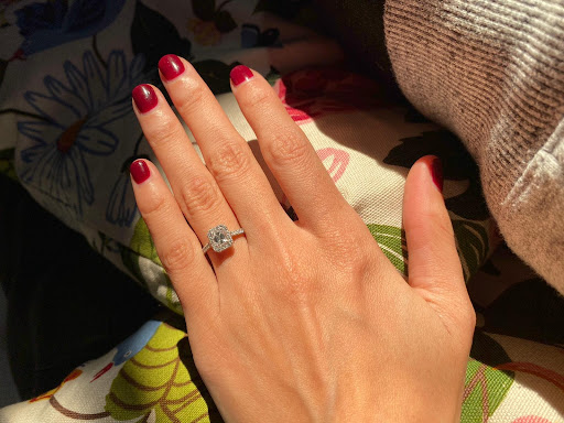 Being involved in the process from the brainstorming stage (pictures, drawings) the sourcing of the diamond to the making of the ring (videos) has been another beautiful part of our engagement story that we dearly cherish.