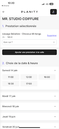Read moreTrĂšs mauvaise expĂ©rience qui avant mĂȘme la fin a trĂšs mal commencĂ©. Jâai pris rendez-vous sur Planity ce samedi 14 juin Ă 10h30 rendez-vous qui a Ă©tĂ© annulĂ© sans aucune explication. Jâai repris rendez-vous Ă 11h, jâappelle depuis les transports en commun pour confirmer la Coiffeuse me dit pas possible vous ĂȘtes une cliente Groupon donc il faut appeler avant et ne pas passer par Planity. Y a-t-il un traitement diffĂ©rent entre une cliente Groupon et une cliente Planity ce nâest pas la rĂšgle du Groupon. Pourtant le salon a des disponibilitĂ©s Ă 10h30 11 heures 12h14 heures et 16 heures. MalgrĂ© les trĂšs bons avis qui mâont incitĂ© Ă vouloir venir faire le lissage chez vous, je me dis que tous vos avis sont bien fake, car si cela commence comme ça Ă la prise de rendez-vous, ce nâest pas trĂšs professionnel de votre part sachant que vous avez quand mĂȘme beaucoup de disponibilitĂ© sur votre agenda...