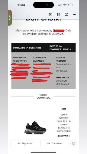 Après cette altercation, j’ai demandé à ma sœur de se présentée au New Balance du Forum des Halles : aucun problème, aucune discussion inutile. Ils ont remboursé ma commande directement, sans poser de questions.
