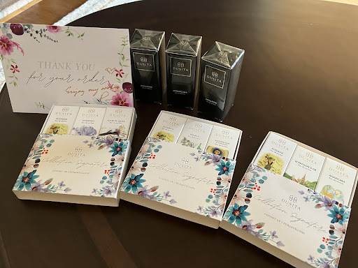 Read moreI have been trying to find a new perfume, with Amber and Rose notes, on the fresh side. I decided that Rosarine was very nice and bought some after using up my sample. The opportunity to buy three half ounce bottles was very welcome, and the choice to try three samples for each bottle purchased was just gorgeous! I really enjoyed reading about each scent, just like reading about food or wine. I am able to try several of Dusitas offerings: first one I put on is Fleur de Lalita. I’m so looking forward to trying Erawan, Moonlight in Changmai, Anamcara and Le Pavillon D’or. I already know I love Rosarine so I got a couple of them to share with my daughter. The packaging and art on the stationery accompanying the perfumes is also beautiful. I appreciate that they are promoted as being at least somewhat natural. I’m so happy to have this experience. And they are real perfumes and have good sillage. The cost was so reasonable too, everything you see in the photo came to me in less than a week for 135.00. How could they do...