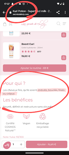 Les cheveux de ma fille ne sont pas fin et donc, selon son descriptif du site une nouvelle fois, le "kurl potion" de la routine qu'ils me conseillent, n'est pas adapté.