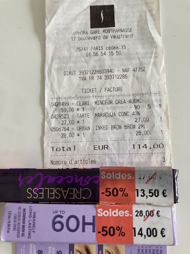 Read moreIncompétence et impolitesse, mérite 0 étoile : Je me présente en caisse pour un retour d'un produit reçu en cadeau, munie tu ticket de caisse version "cadeau". Il y avait une jeune employée et une autre moins jeune qui étaient là, la jeune demande comment faire, l'autre regarde le ticket et dit qu'il y a problème car on ne voit pas le mode de paiement initial, la jeune dit alors "on peut peut être appeler le magasin d'achat initial (Opéra)", et l'autre dit de suite "ben non il faut qu'elle retourne dans le magasin où avait été acheté le parfum", j'ai alors demandé "vous êtes sûre qu'on ne peut pas les appeler pour savoir, cela pourrait m'éviter un aller retour jusqu'à là bas", et toujours cette personne la moins jeune me dit sèchement "c'est pas mon problème" ! Est-ce une manière normale de parler aux clients ? J'arrive ensuite au magasin d'Opéra, ils ne trouvaient pas le mode de paiement non plus mais ont appelé le service client et l'ont retrouvé, ils voulaient me rembourser en espèce mais finalement m'ont fait un remboursement par CB car il n'avaient pas assez de monnaie (comme quoi ce n'était pas si important finalement cette histoire de mode de paiement), et SURTOUT ils m'ont dit que le magasin de Sephora Montparnasse a fait GROSSE ERREUR car il n'y a pas du tout besoin de retourner au magasin d'origine pour faire un retour produit, qu'ils auraient dû appeler le service client tout simplement, que c'est fou qu'on m'ait dit ces bêtises à Montparnasse, qu'ils ne connaissent pas leur métier etc. Plus d'1h aller retour de perdue, et un "c'est pas mon problème !" de ramassé à la figure, merci Sephora Montparnasse !