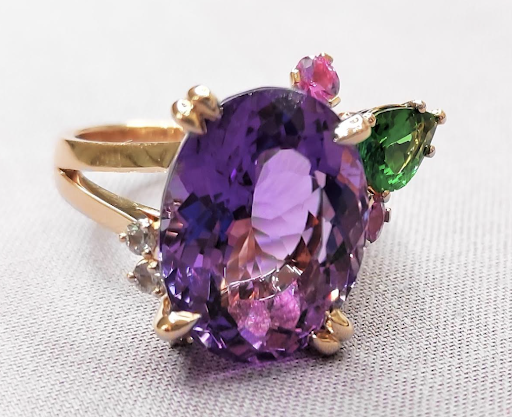 I wanted to create a custom cocktail ring from a stone that was gifted to me. I went to several jewellers in the neighbourhood and beyond, and only Soann offered me the service, quality and price that I was looking for. I worked with Elisa to design the initial idea of the ring, which was a lot of fun, and we came up with something fresh and unique. Then, Soann created drawings, and we had several editing rounds to get the look I wanted.
