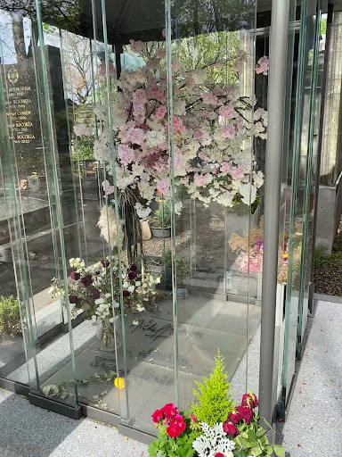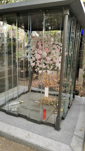 🪦Sépulture funéraire avec des vitres et des fausses branches de cerisiers roses.