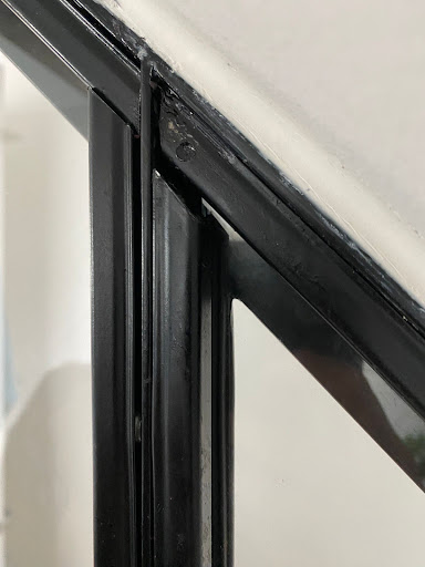 Première intervention : a) Le technicien aurait du caler la verrière pour répartir cette marge sur les différents côtés, bah non il a tout mis en haut : le résultat est horrible ! b) La verrière est noire, posée sur un mur noir, le technicien met un silicone blanc ! c) Le technicien fait un trou dans le mur face à la verrière (ok ça peut arriver) mais rebouche vulgairement et ne propose pas de reprendre la peinture - Ah bah oui, une peinture ça doit se refaire sur le pan de mur complet et donc ça mange le bénéfice donc on va laisser ça comme ça et ne pas répondre au client.